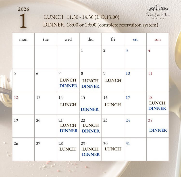 1月の営業日のお知らせです。 ディナーは完全予約制です。 お時間は2部制となっております。 お誕生日や結婚記念日等でご利用の際は、 メッセージプレートのご対応もいたしますので スタッ... -