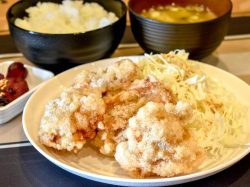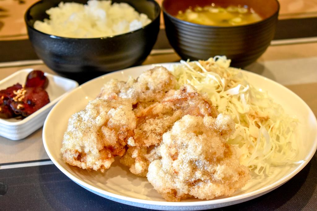 からあげは以前と変わらぬ味にサクサク感がプラスされて再登場。特盛のからあげ定食には、なんと10個のからあげが!ボリューム満点で満足できること間違いなし。