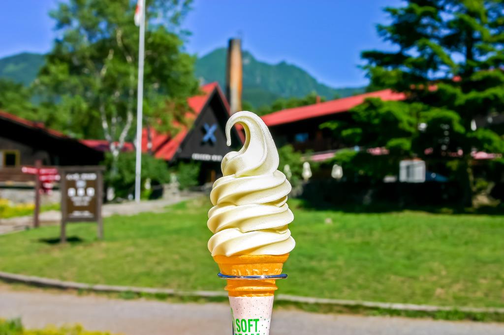 ここに来たら必ず食べたいのが清泉寮ソフトクリーム!ジャージー牛から搾った濃厚ミルクと美味しい水で作るなめらかで一度食べたら忘れられない味わい。