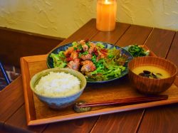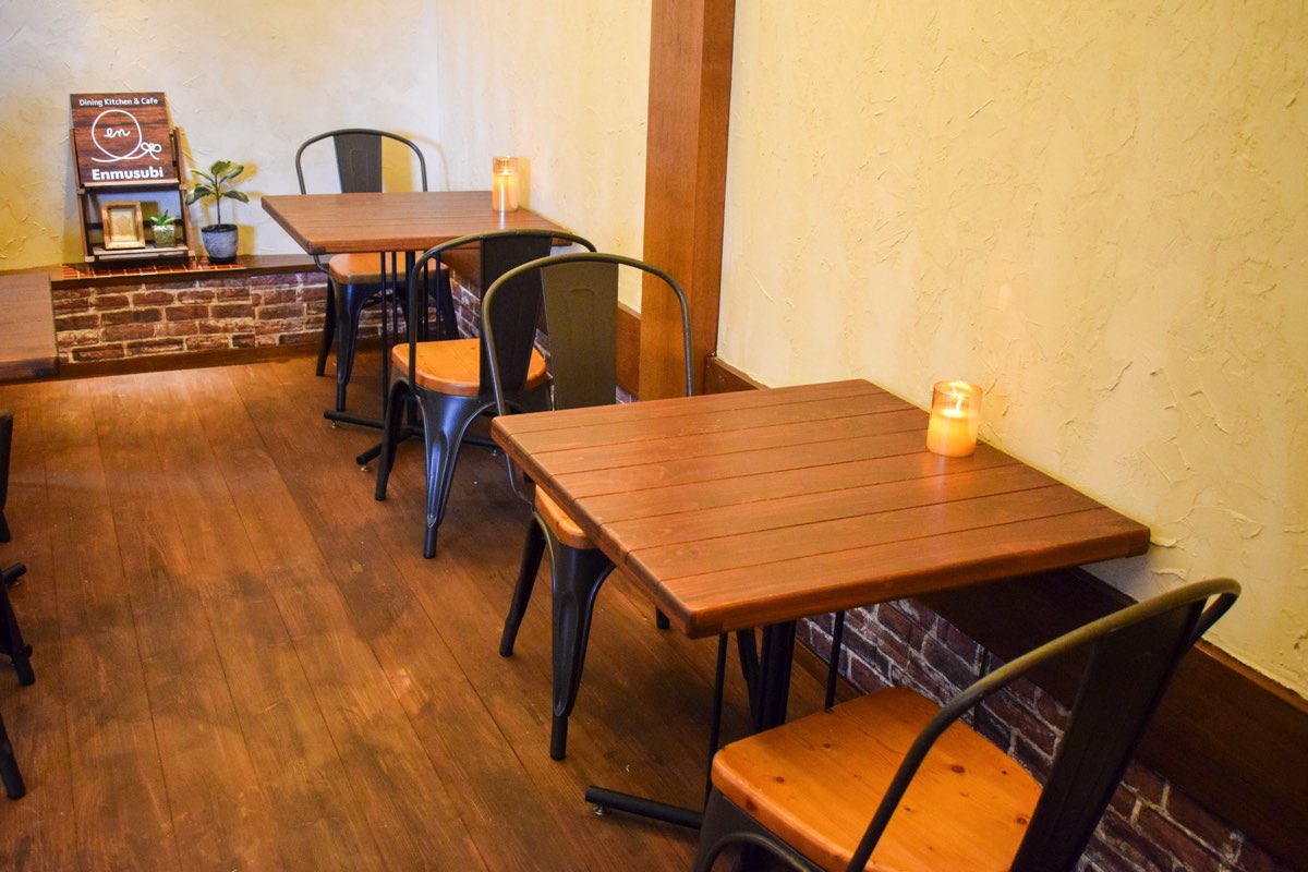 甲府市住吉のdining kitchen&cafeえんむすび。食を通じて役に立っていきたい、出会った方に感謝をしたいという思いが込められている。