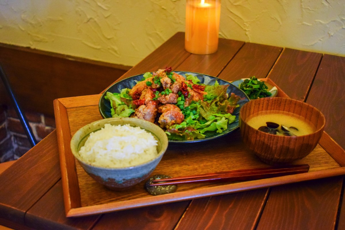 キッチンれお昼は定食・夜は居酒屋、唐揚げが美味しいお店!キッチンれお。市場で仕入れた新鮮な鶏肉を使用したからあげ... -