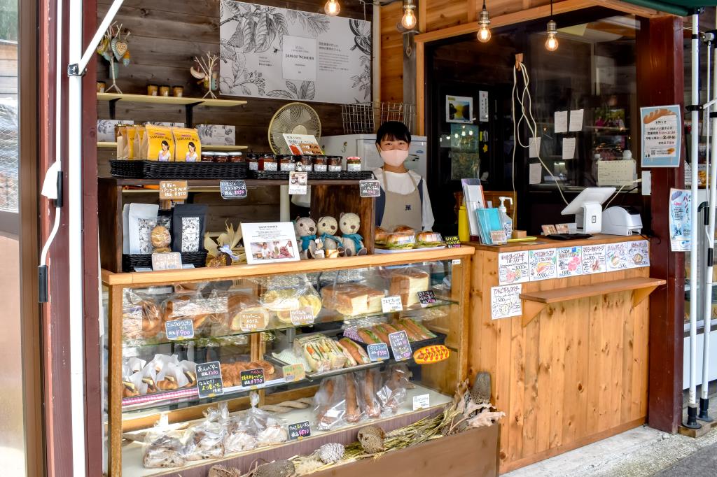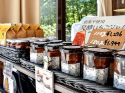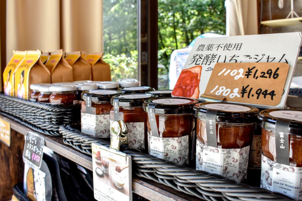 店頭に並ぶジャムは店の裏手にある工房で作った手作りの発酵ジャムで米粉のパンケーキミックスや紅茶なども販売している。
