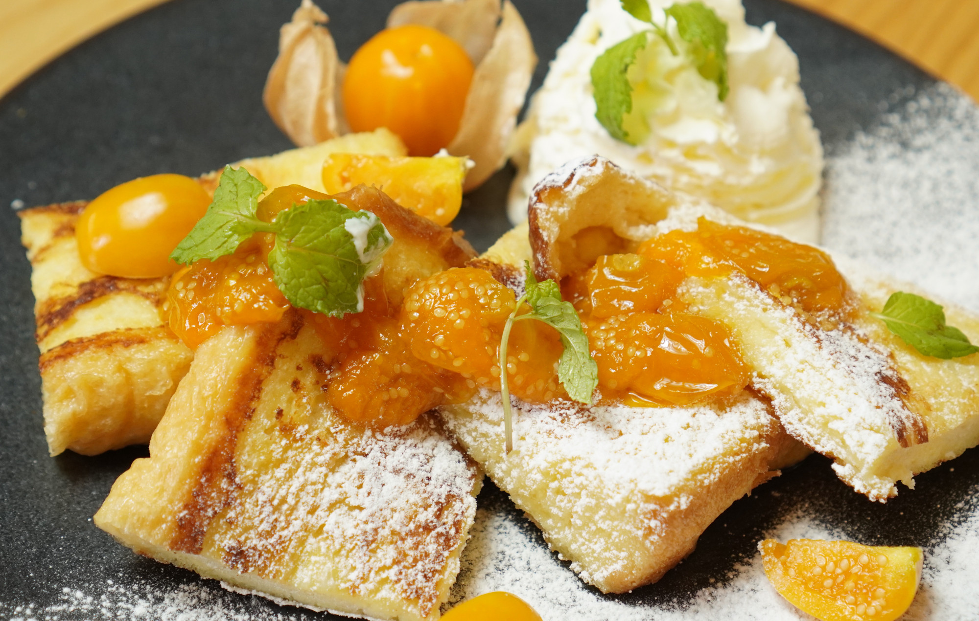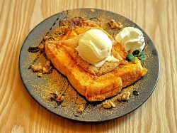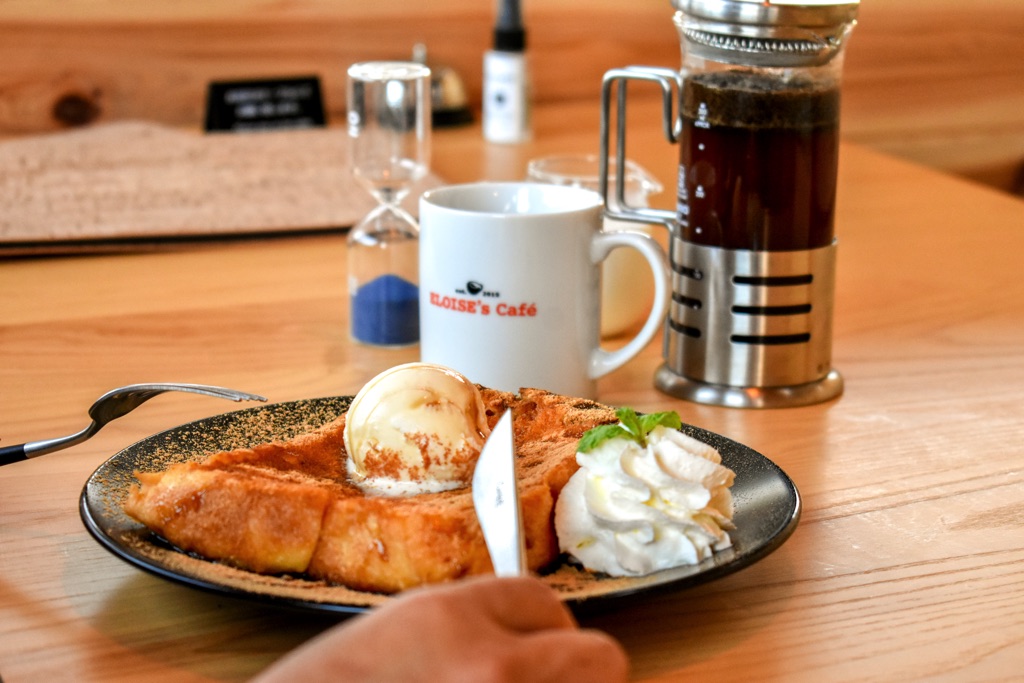 おすすめは何といってもフレンチトースト!アパレイユをじっくり漬け込んだイギリス食パンはふわっふわ!噛むと旨みがジュワっと溢れる至福の味わい。