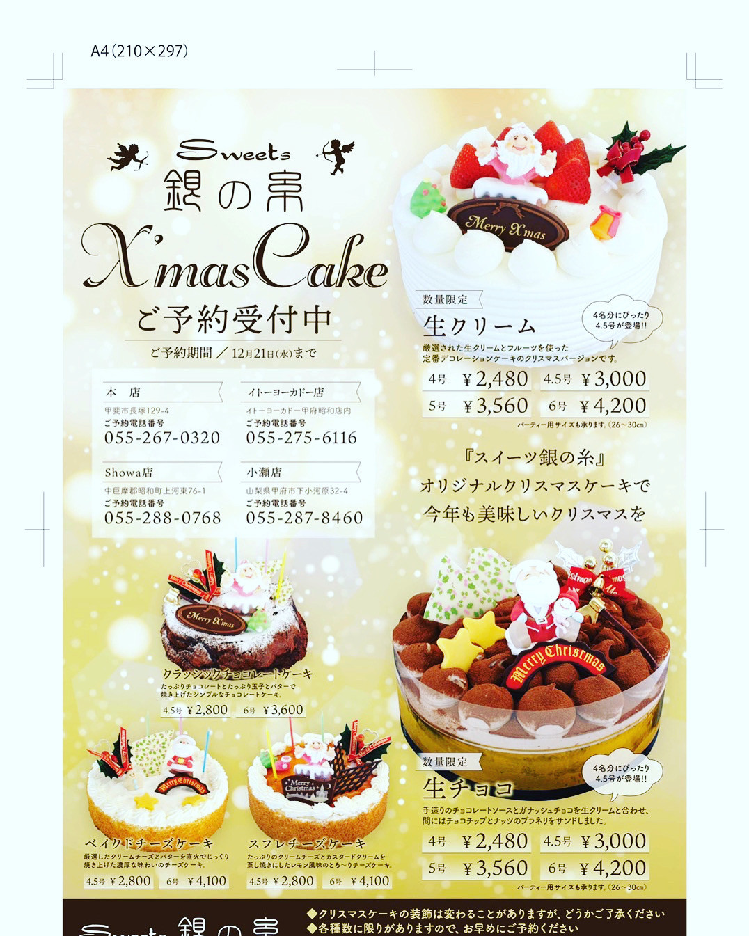 全店でクリスマスケーキの予約を開始しました🎅