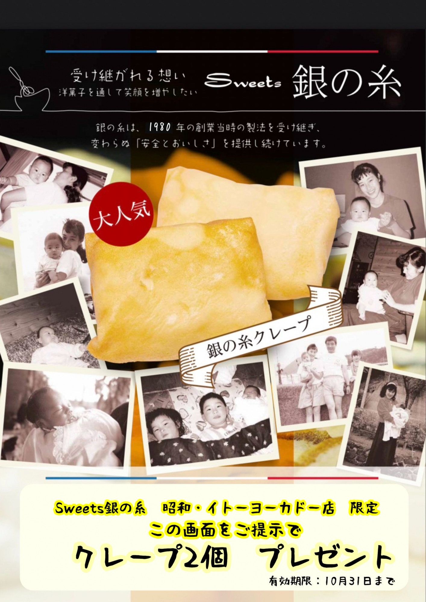 こんにちは🌞 銀の糸です🪡 10月になりました😊 10月はSweets銀の糸昭和店の記念月です! 本当にいつもありがとうございます😊 お世話になっているお客様にクーポンをご用意しまし... -