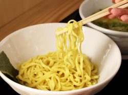 北杜市で製麵所を営む老舗が手がけるラーメンの自慢はやっぱり麺!この1杯の為に改良したオリジナル♪中華そばの麺は多加水のちぢれ麵、つけ麺の麺は小麦を感じるもっちりの平打ち麺!麺を増量しても金額はそのままなのが嬉しい♪