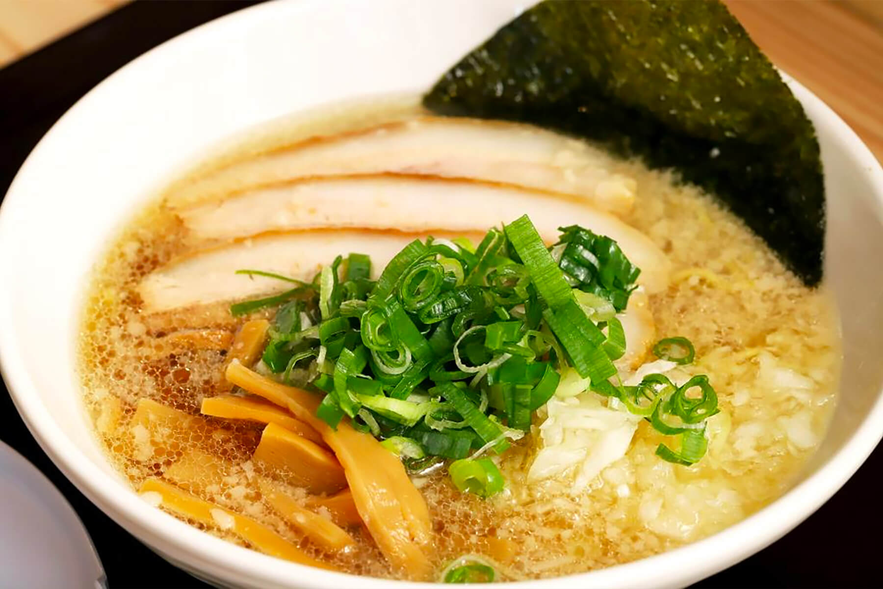 麺に合うよう試行錯誤を重ねたスープは、背脂のコクがありつつすっきりと飲み干したくなる!粗く刻んだ玉ねぎの食感と甘みも美味しさのアクセントに♪