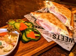 おすすめは、スペインバルの定番・トマトの旨味がギュッと詰まったパンコントマテ!アツアツのうちに食べたいホットサンドもぜひお試しを。