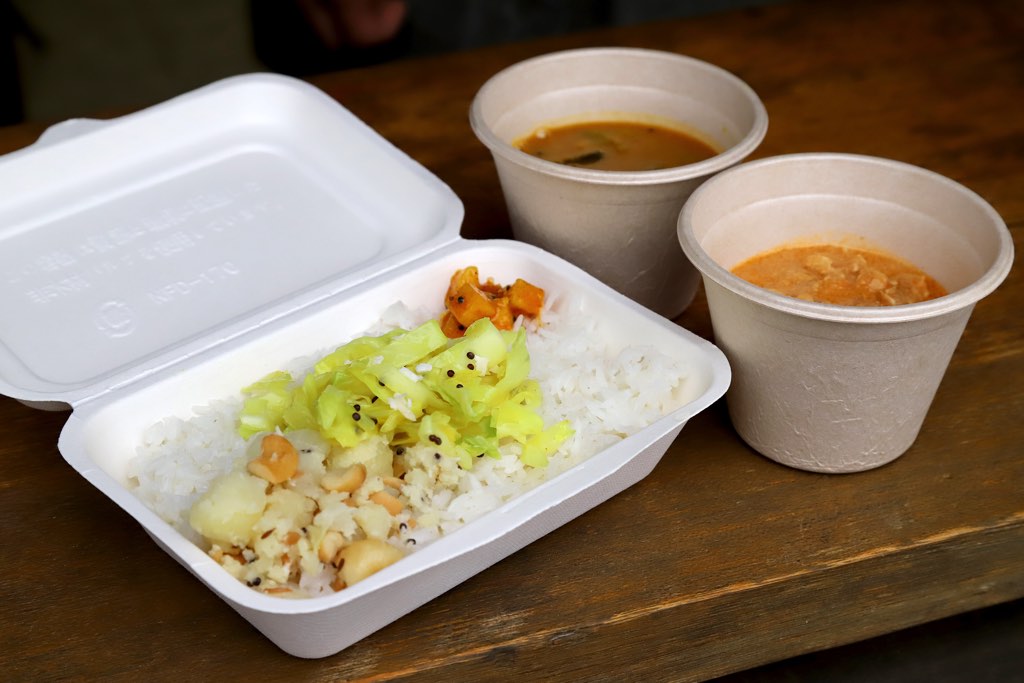 スパイスの香りに誘われて近づいてみると、「SPICE CORNER」の看板が。その先にある小さな小屋で販売するのは、インドの家庭料理をベースにつくるスパイスカレー弁当。インドのおうちカレーを自宅で味わえる、カレーのテイクアウト専門店だ。