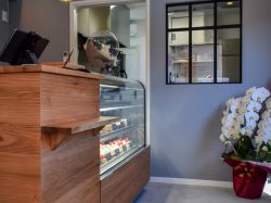 Patisserie TSUBO白と黄色を基調とした爽やかな店内。ショーケースには地元で採れた旬の食材を使った彩り豊かなケーキが並ぶ... -