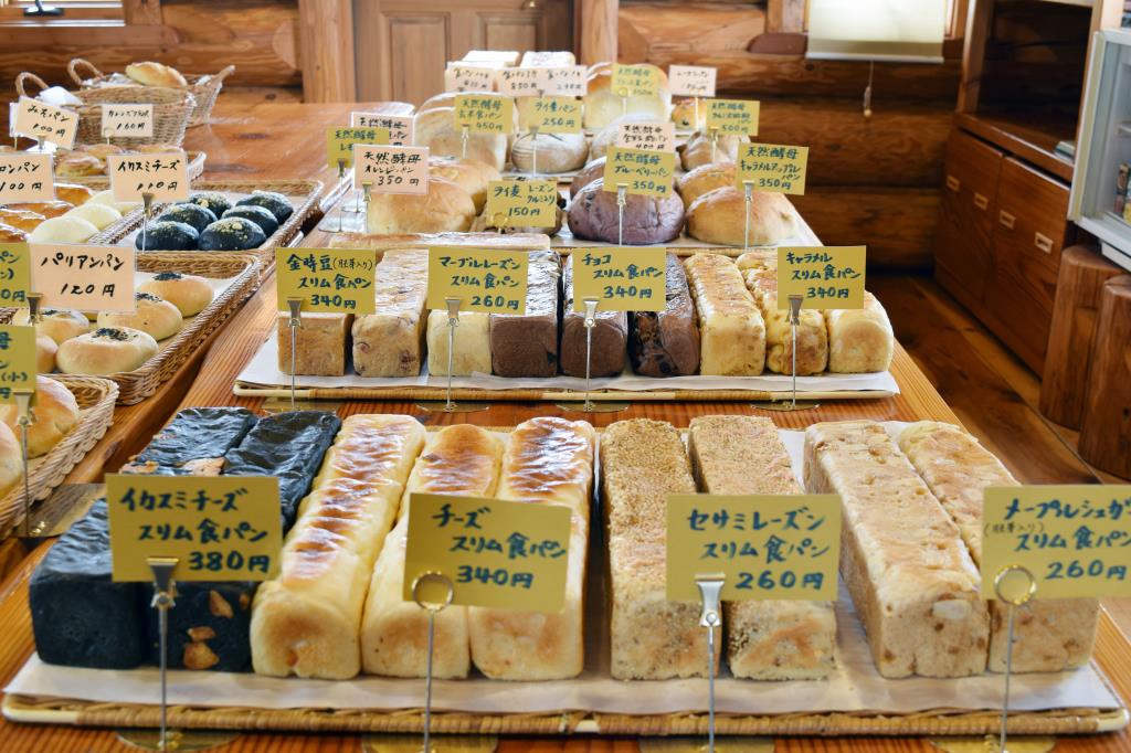 書の先生だったというオーナーのお父様手作りの看板が目印のログハウス風パン屋さん。