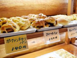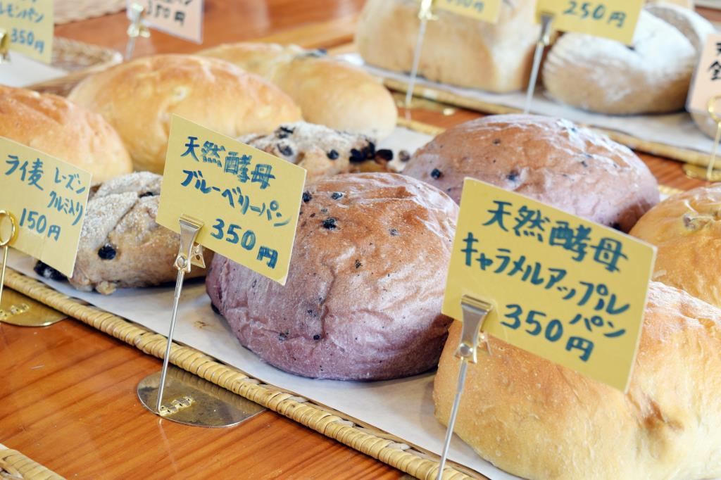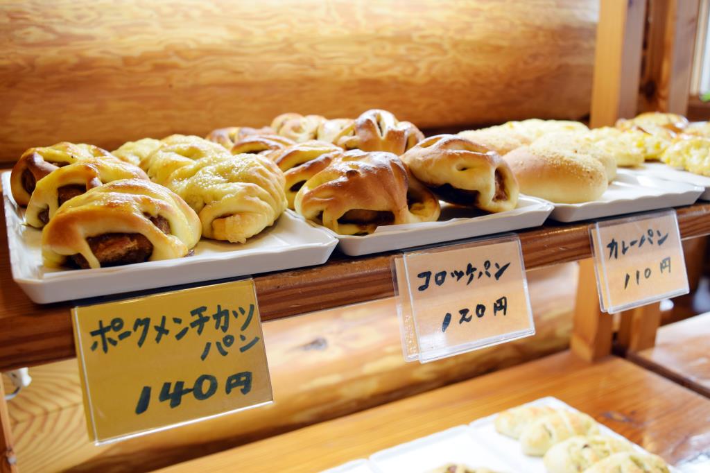 天然酵母を使用したパンは地元のファンも多く、菓子パンに関してはマーガリンでなくコク重視のバターを使用しているのが特徴。