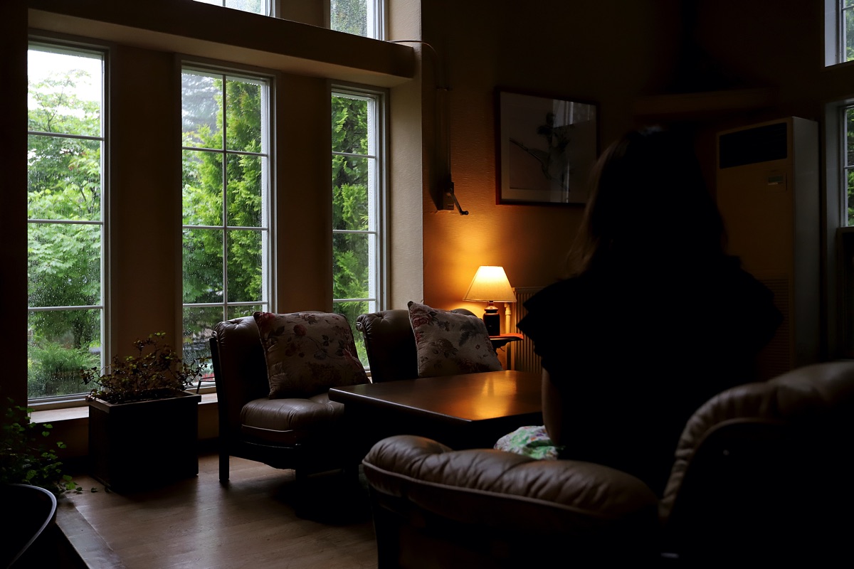 北杜市大泉高原の森の中にあるダイニングカフェ・パウゼ。もともとペンションだった店内は、一軒家の別荘のような落ち着いた雰囲気。