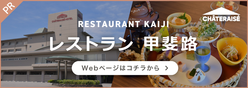 2022年4月、石和にオープンした「シャトレーゼホテル石和」内2Fにある「レストラン甲斐路」。