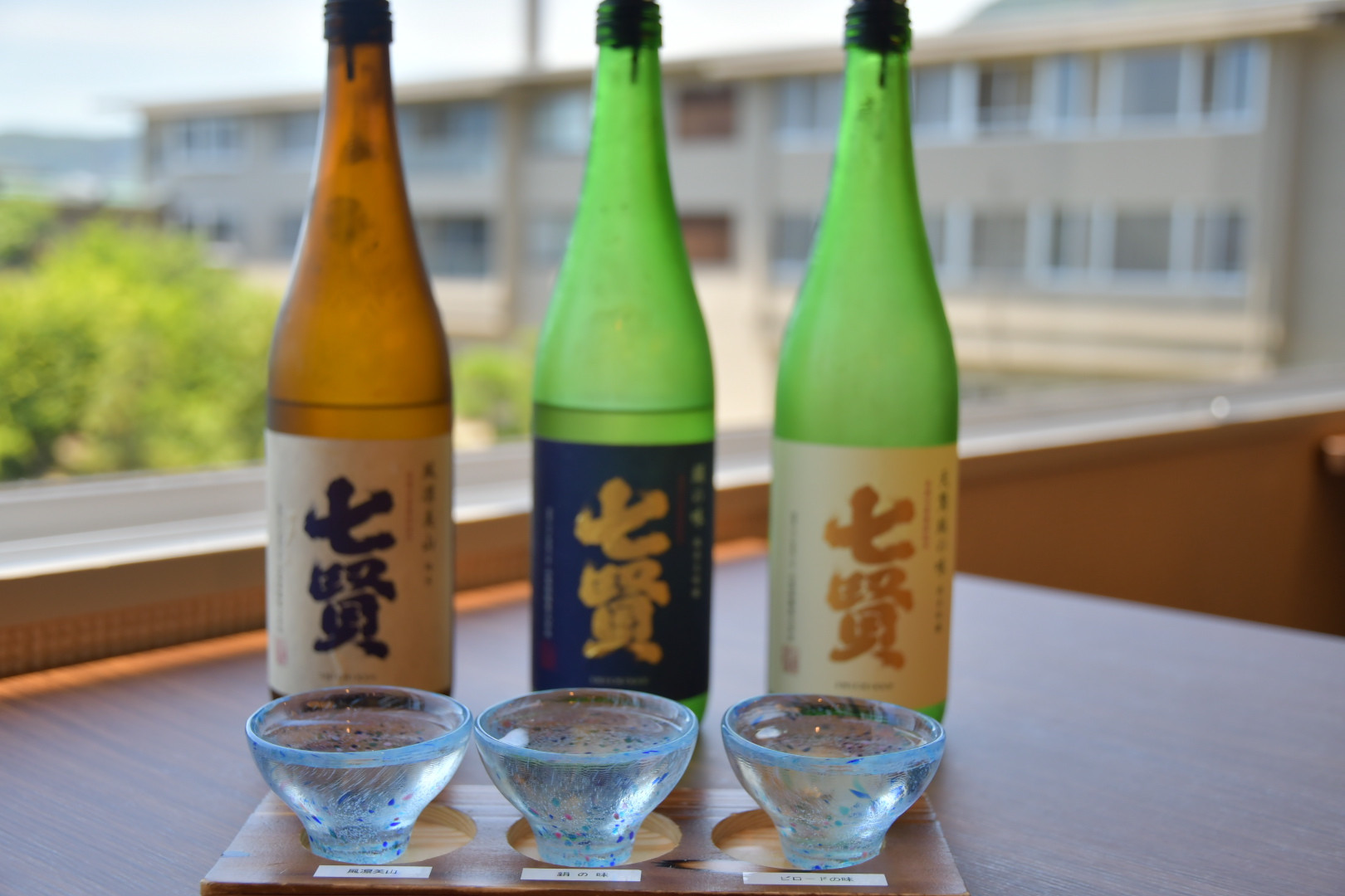山梨県産日本酒「七賢」の利き酒セットも楽しめます。