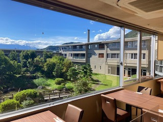 広大なテラスと抜けるような空を眺めながらのお食事が可能です。