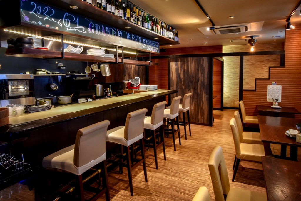 クラフトビールやハウスワイン、ハイボールに焼酎など種類豊富なお酒と共に、肩ひじ張らずに楽しく美味しくちょっと贅沢な時間を過ごしてほしい。カウンター席、テーブル席、落ち着いた雰囲気の個室もあり。