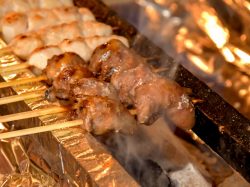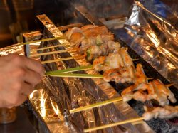 焼鳥をコース料理のように1本1本お酒と共に楽しむ事ができ、「ふりそで」や「はらみ」「せせり」「ちょうちん」などの希少部位を食す事が出来る。鶏は主に甲州地鶏と信玄鶏を使用。