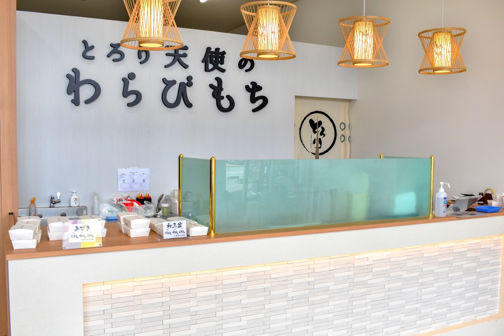 驚くべきとろとろ食感が自慢の本格生わらびもち専門店「とろり天使のわらびもち」甲府テラスショップ店。