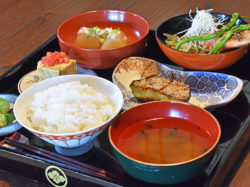 cafe くじらぐもは地元の無農薬野菜、食材を使い、味噌や醤油も自家製。
