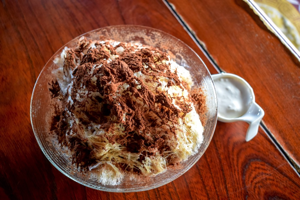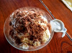 夏には蔵元八義の天然氷を使用したふわふわかき氷も楽しめる。