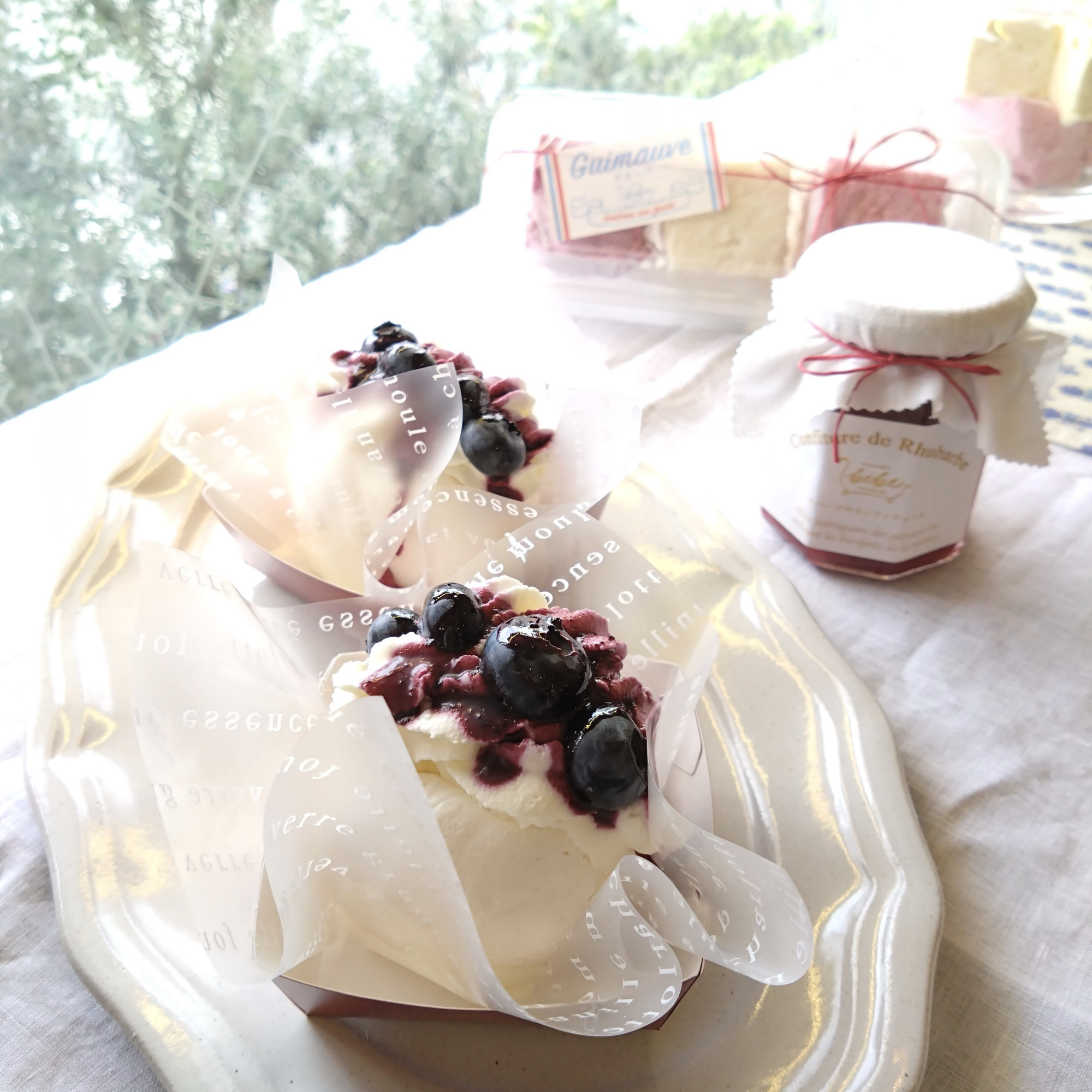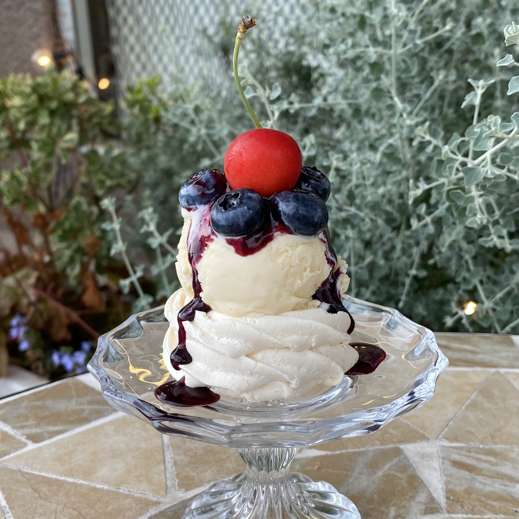 旬のブルーベリーと甘さ控えめの生クリーム、サクサクのメレンゲの共演。食感と風味をお楽しみください。