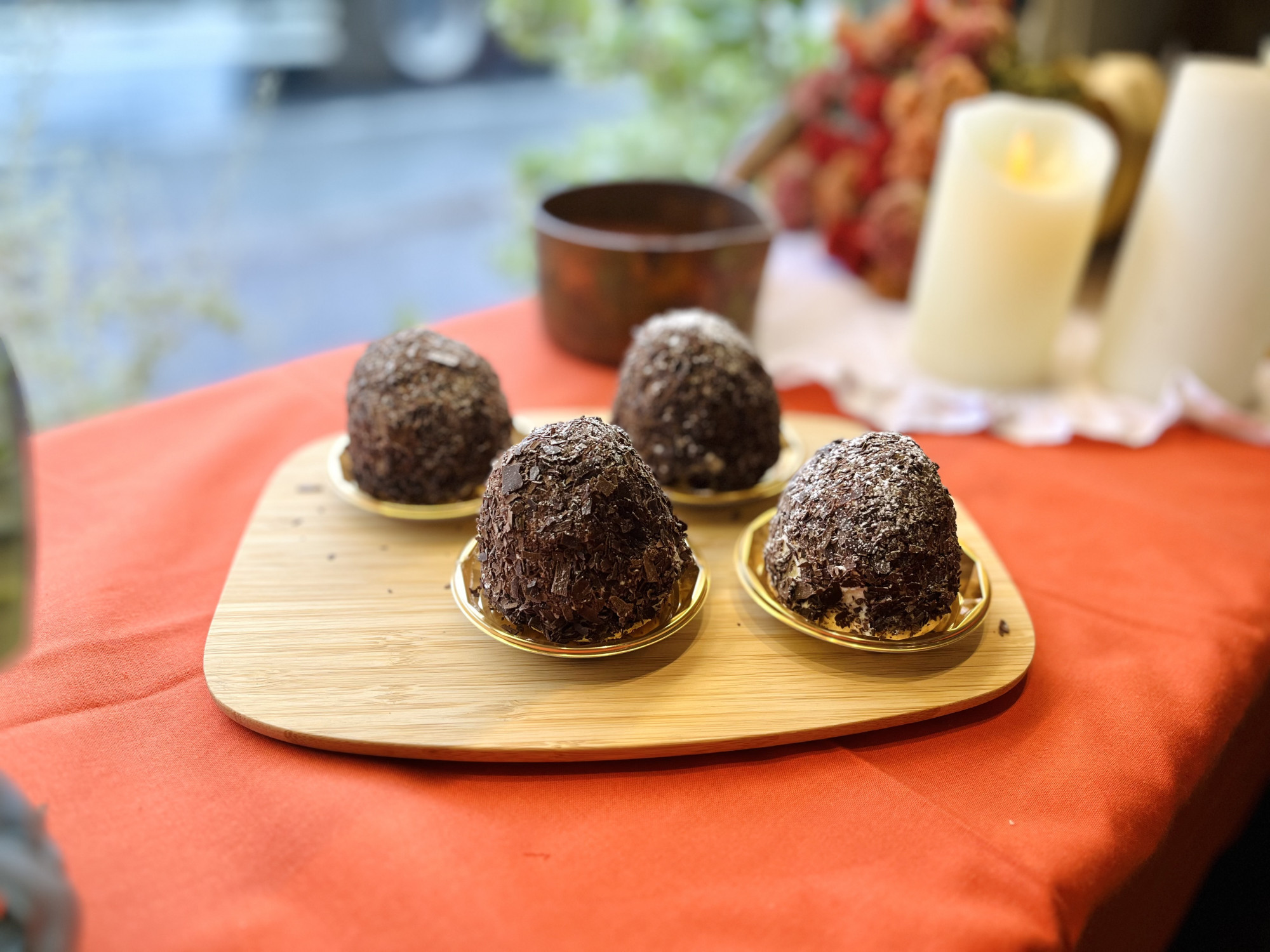 ムラングと生クリームのとろけるような食感と、たっぷり使った生クリーム本来の味とビターチョコレートとのマリアージュをぜひお楽しみくださいませ☘