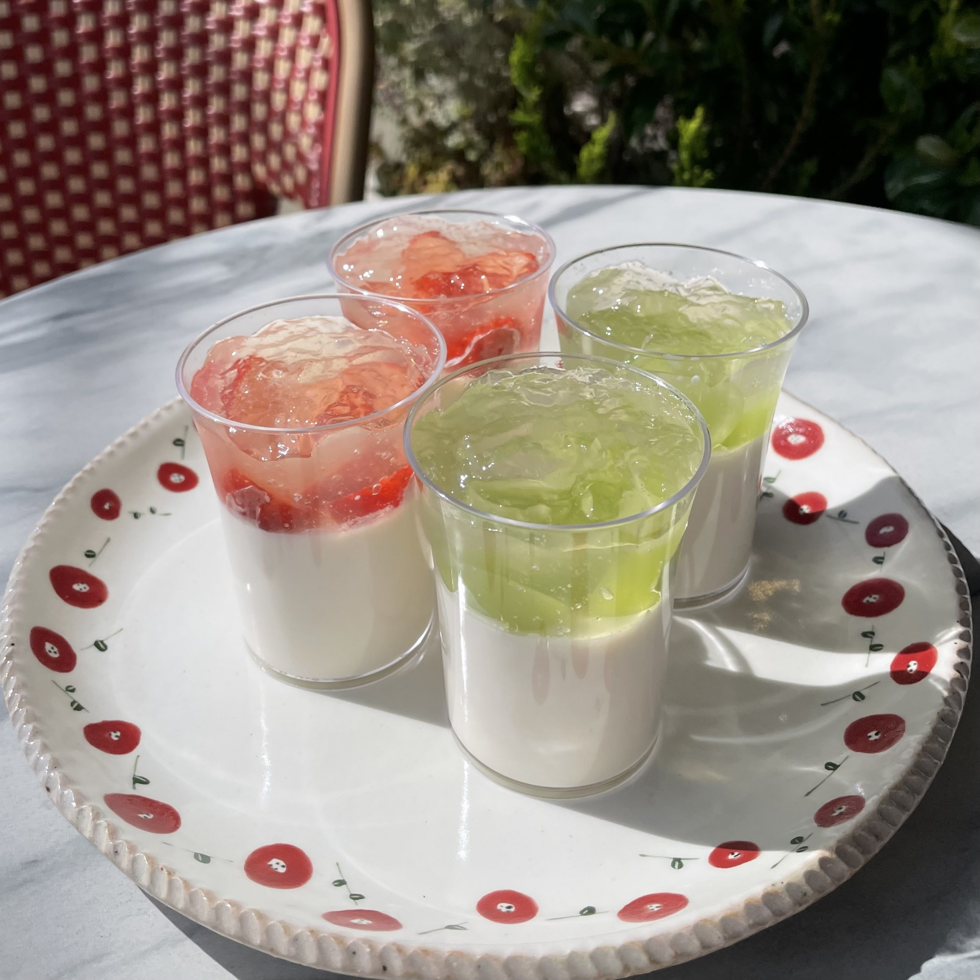 とてもいいお天気ですね! 本日も19:00まで営業しております! なめらかで優しい甘さのブランマンジェに フルーツとジュレをたっぷりとのせました。 本日は2種類のブランマンジェご用意してお...