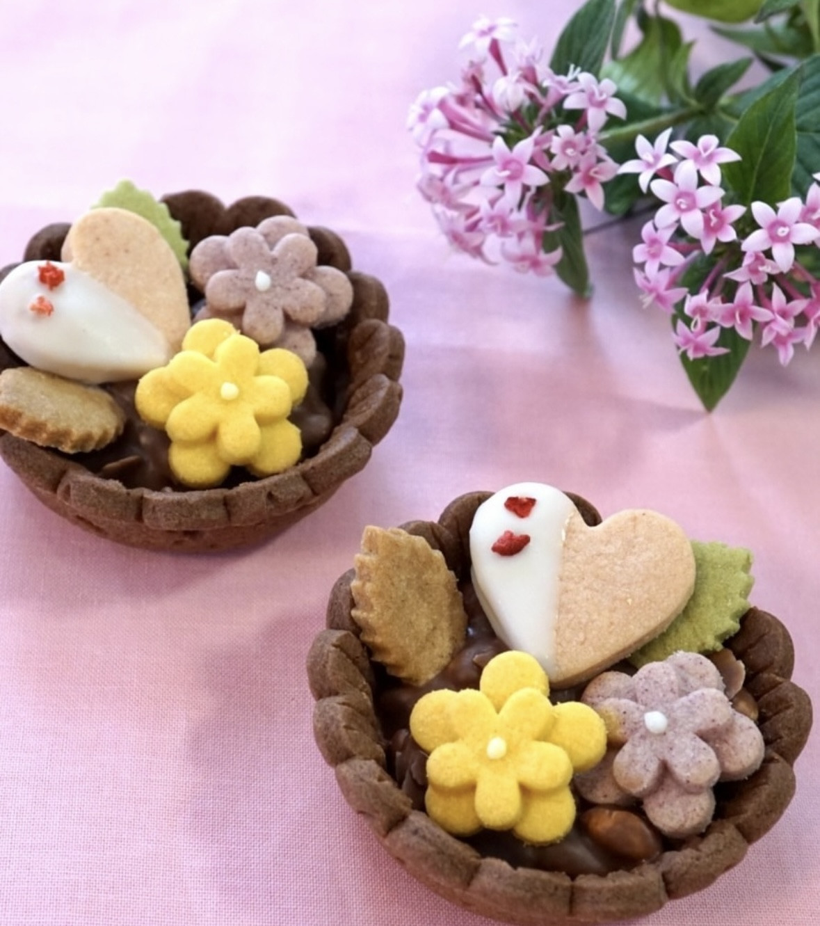 サブレ・オ・ショコラは厚めに焼いたチョコレートサブレにべべならではのお花をたっぷりとのせました。