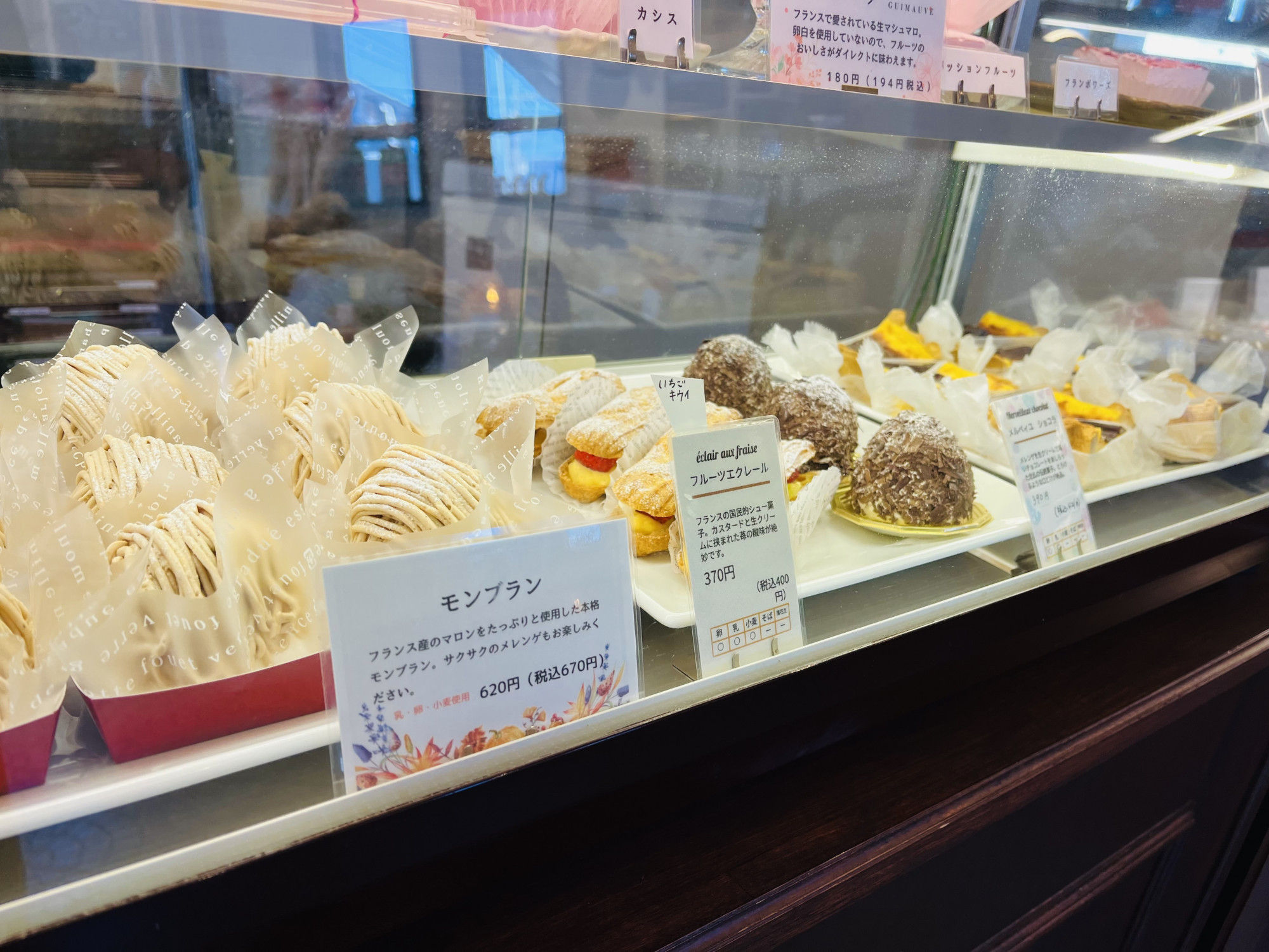 ・フィナンシェ 216円 ・マドレーヌ 194円 ・フラン 410円 ・ギモーヴ 151円 |