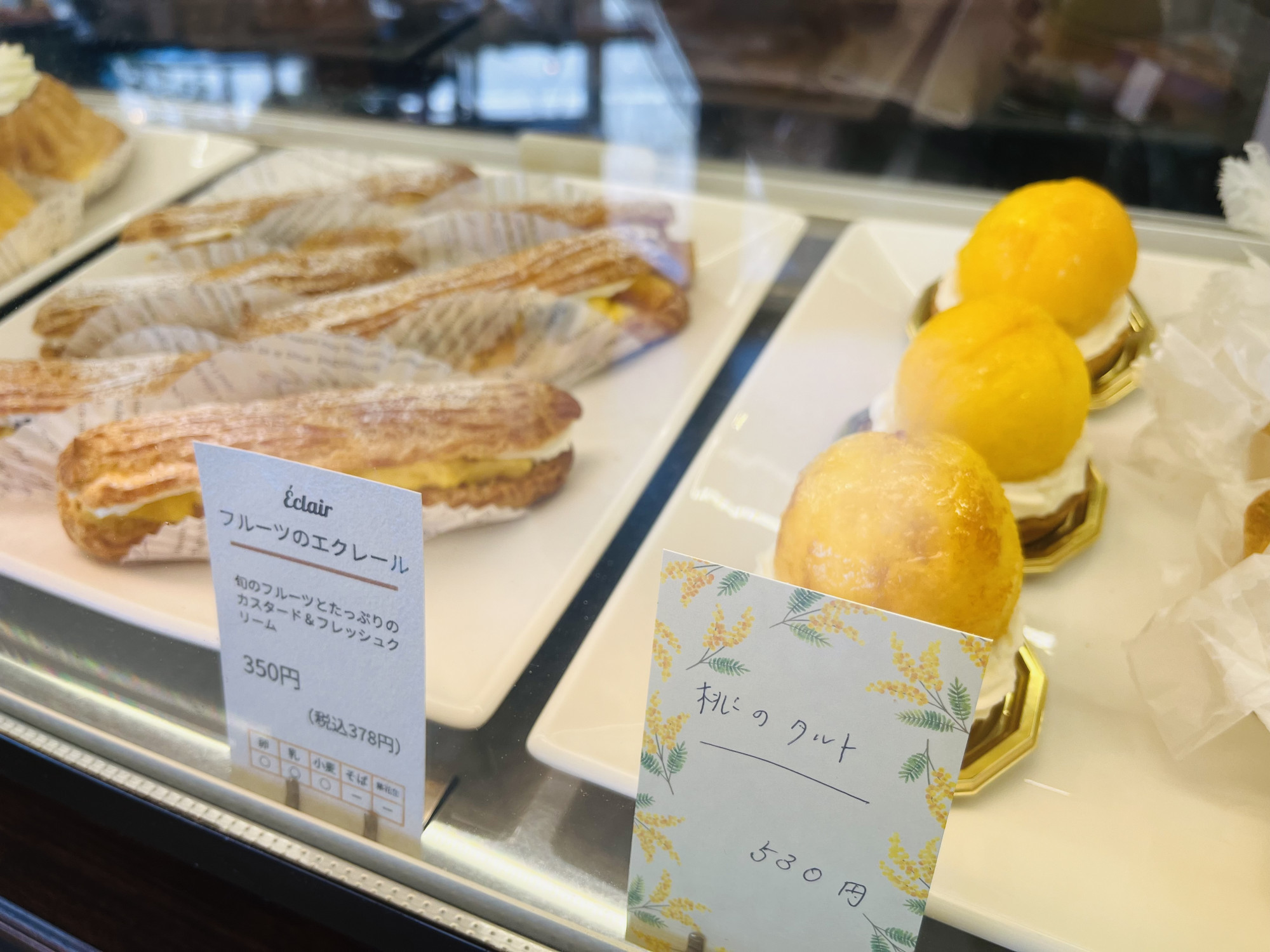 本日も夏のような暑さですね。 皆様、水分補給をしっかりしてお過ごしください。 本日は桃のタルト&桃とブルーベリーのエクレールが登場しています。 旬の走りの桃を贅沢に使った生菓子となっておりま...