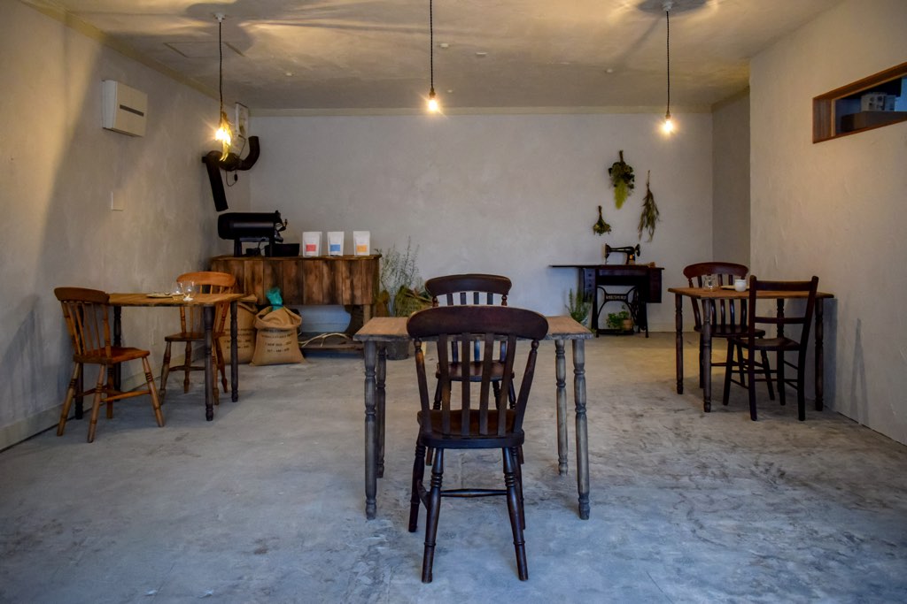ヴィンテージアンティークが並ぶ心地よい静かな空間にオーナーが焙煎するコーヒーの香ばしい香りが漂う。