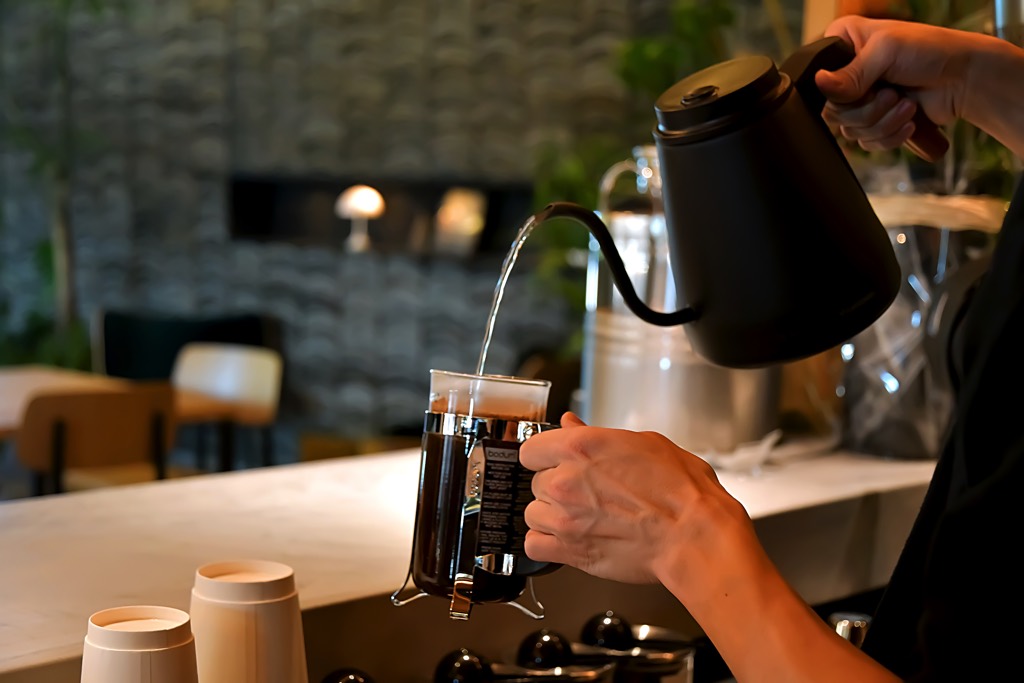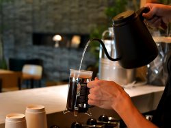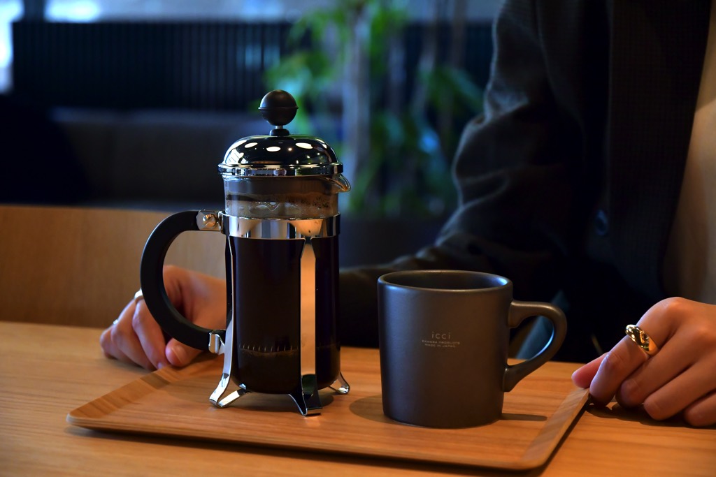 イチオシは2号店限定のフレンチプレスでその場で手間暇かけて抽出したコーヒー。フルーティーな香りとライトな口当たりなので、焼き菓子とのペアリングも楽しめそう♪
