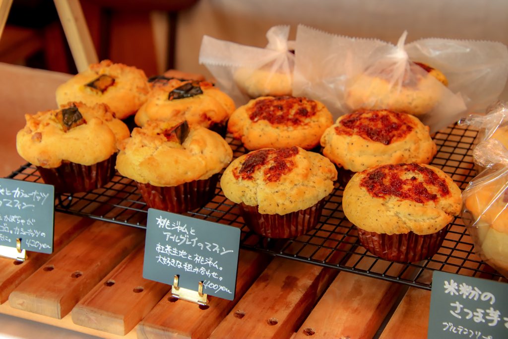 食の多様な選択肢の一つとして植物性100%でからだが喜ぶ素材にこだわり、焼菓子とパンを手づくりしている。マフィンやケーキは山梨産の果物と無農薬野菜(塩山のマル神農園など)を主に使用しており、季節によって様々な種類が店頭に並ぶ。