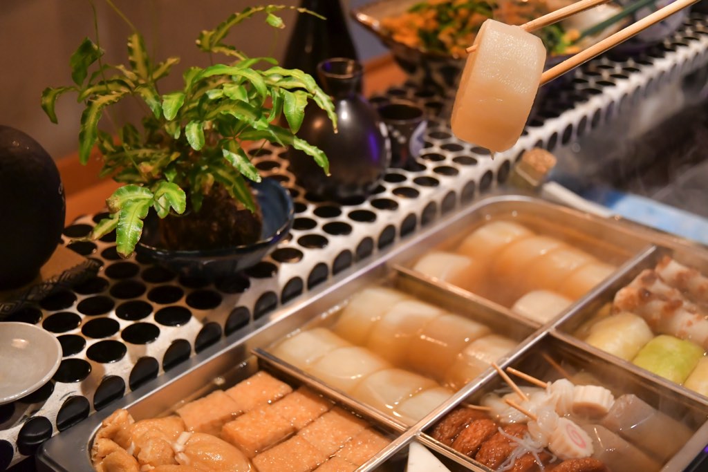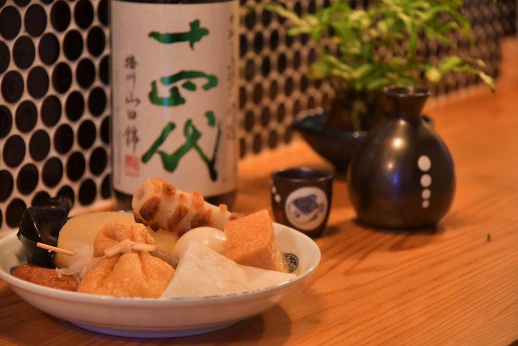 既に営業している甲斐市の1号店との違いは、九州でスタンダードな「トビウオのあご出汁」を使ったおでん。ほんのり甘み香る上品な味わいの出汁は日本酒などの組合せにもオススメ。