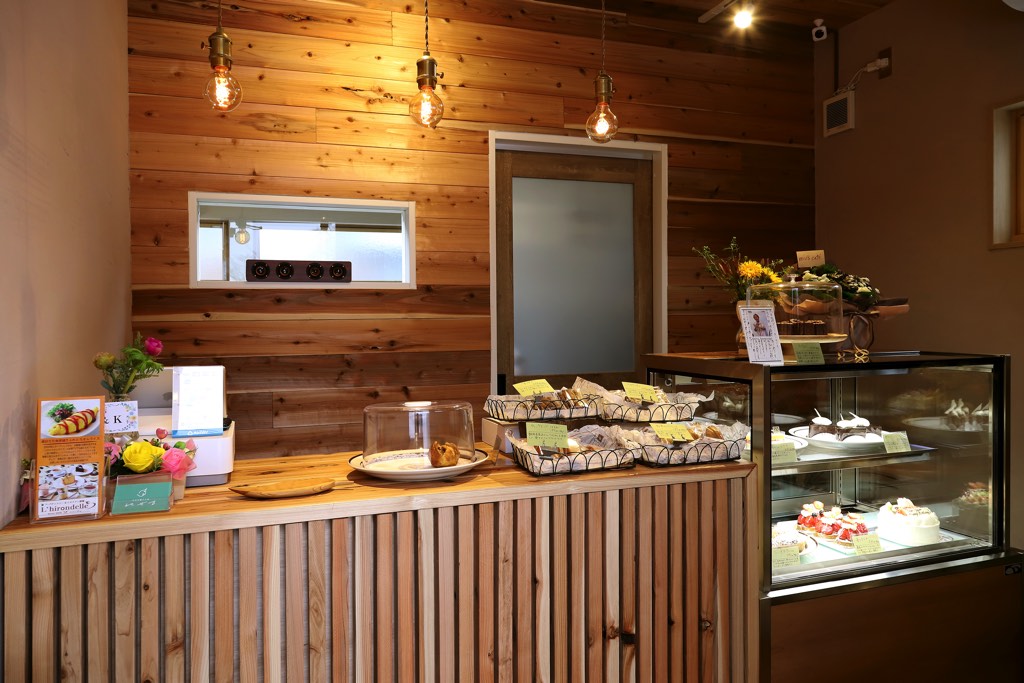 河口湖の小さなケーキ屋さん「木立の菓子工房れぜる」。ショーケースに並ぶケーキは全て、オーナーシェフ自ら愛情込めて作り上げている。