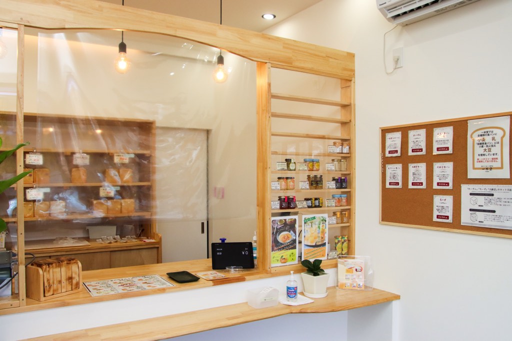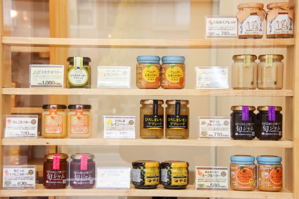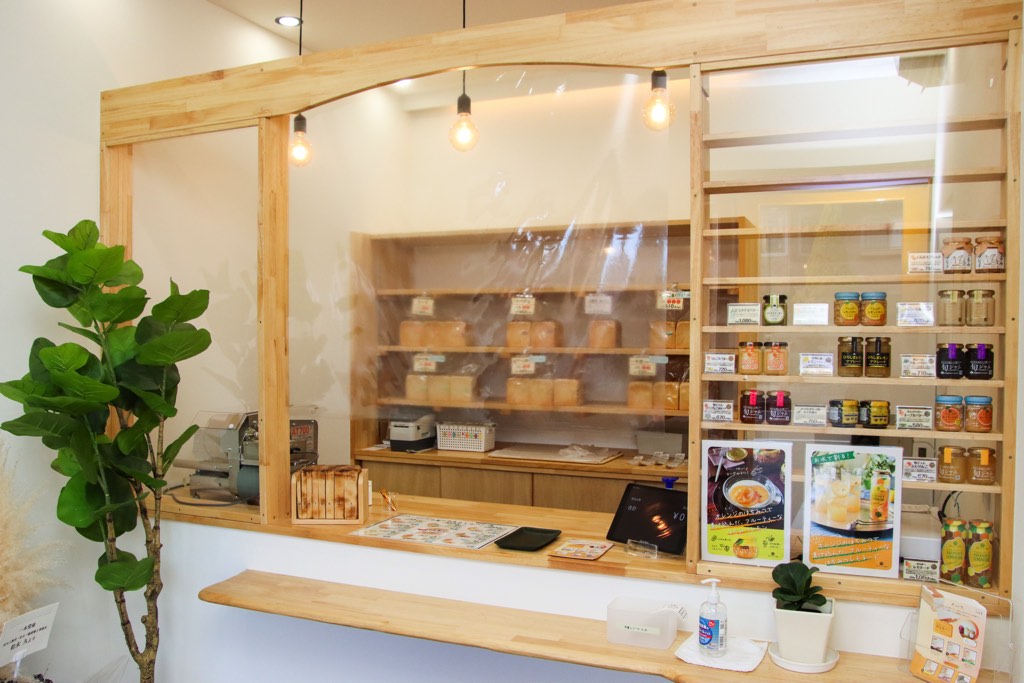 店内には様々な種類の食パンの他、それに合うジャムやバターなども取り揃えている。