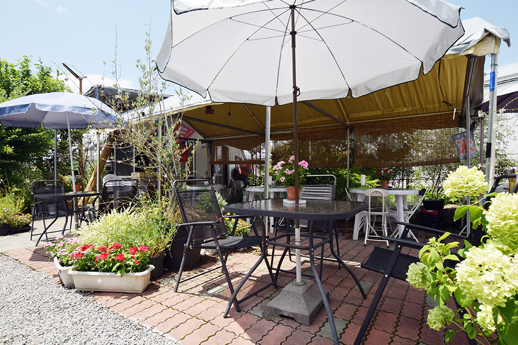お花屋さんが営むカフェ。農園で採れた苺や勝沼の桃を使用したかき氷が人気!