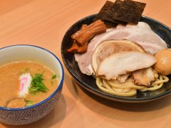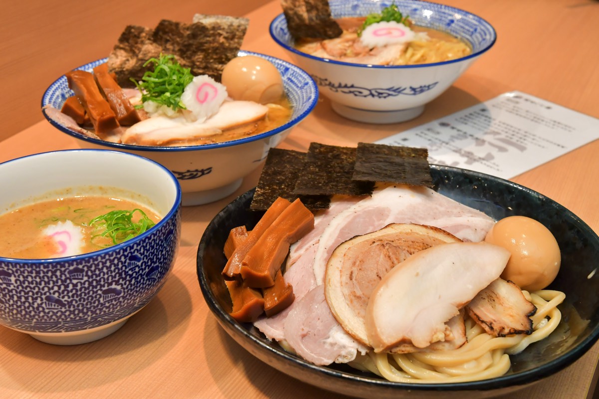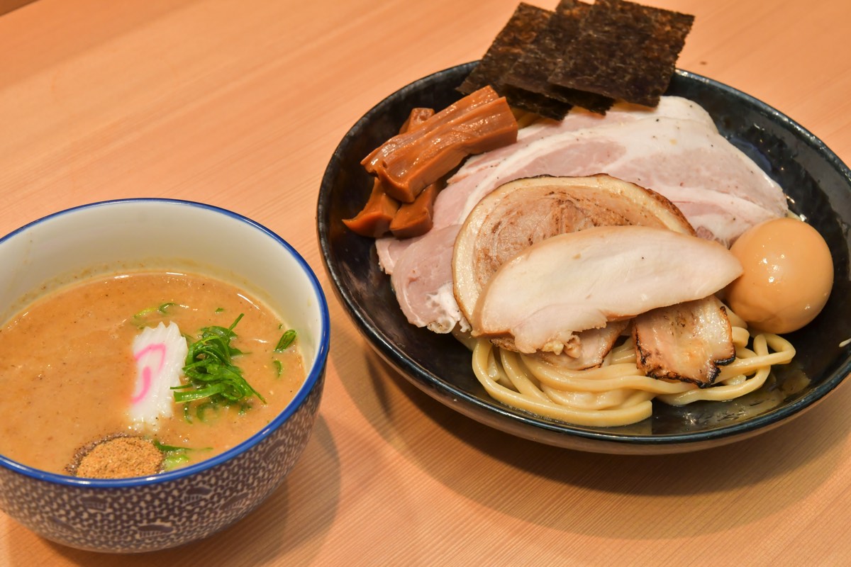 お腹いっぱい食べたい人は豚バラ・豚ロース・鶏むねのチャーシュー3種としみしみ味玉がのった「特製濃厚つけ麺」がおすすめ!