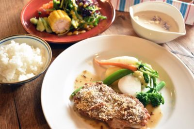 どこか懐かしい雰囲気の仁田平マルシェ。素材の味を活かして作られた料理を味わいながらゆっくりくつろぐことができる。また、地域の廃材をふんだんに使った店内...