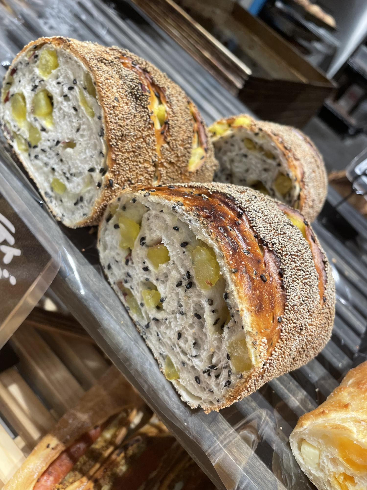 ゴマの生地で中には鳴門金時がゴロゴロ入っております。