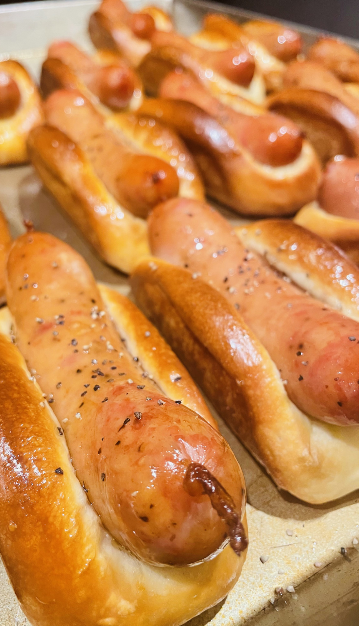 当店のオリジナル小麦粉を使用した、フランスパンの生地に手作りのシチューを包みました。