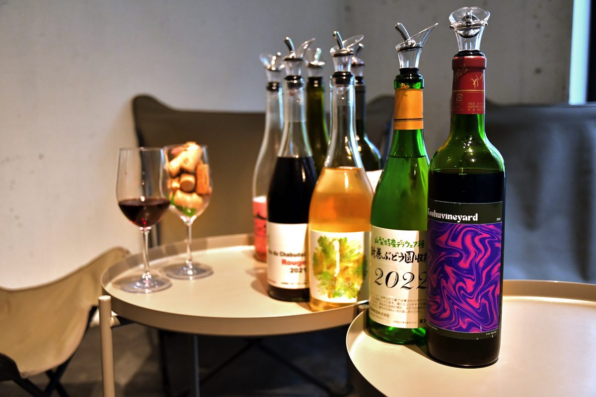 ワインメニューは山梨県産ワインは勿論、海外の自然派ワインなどを中心に常時4~6種の商品を取り揃えている。