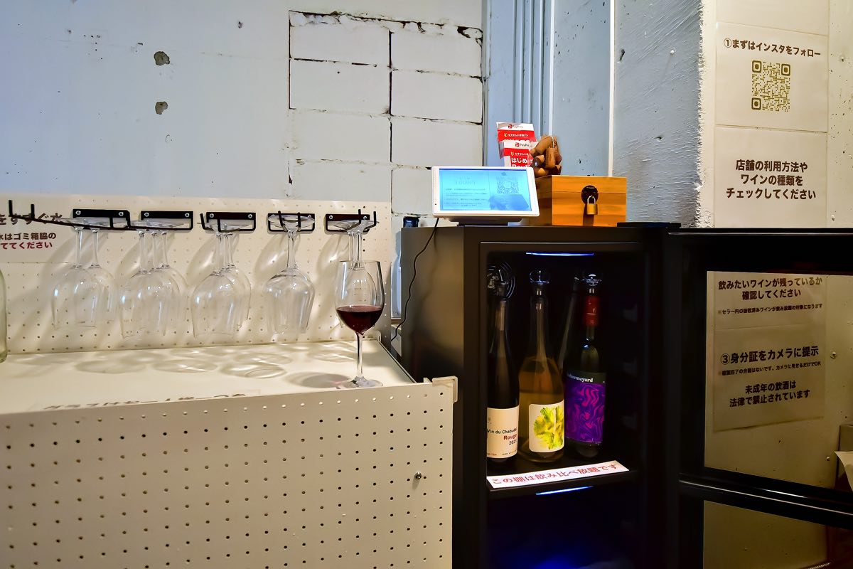 甲府市丸の内にある無人店舗型ワインバー「ムジン」 。