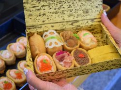 ・プレーン 120円 ・花れんこん 150円 ・えびイクラ 200円 ・エビマヨ 180円 ・牛そぼろ180円 ・生ハム 180円 ・甘~い玉子焼き 200円(2切1P) ・本日のお惣菜各種 |