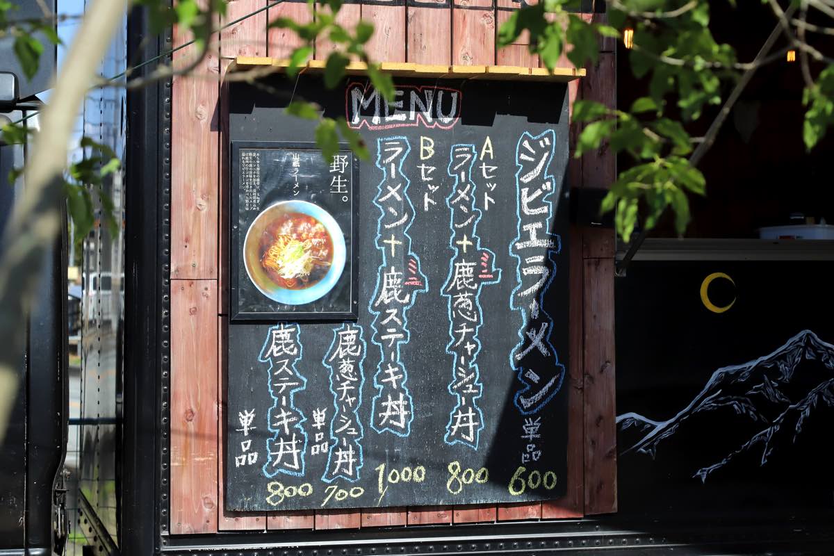 ・ジビエラーメン 600円 ・Aセット(ラーメン+ミニ鹿ネギチャーシュー丼)800円 ・Bセット(ラーメン+ミニ鹿ステーキ丼)1,000円 ・鹿葱チャーシュー丼 700円 ・鹿ステーキ丼 800円 |