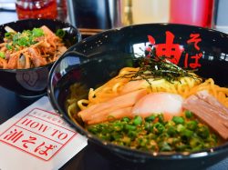 甲府で2号店めとなる油そば専門店「東京油組総本店甲府昭和組」。