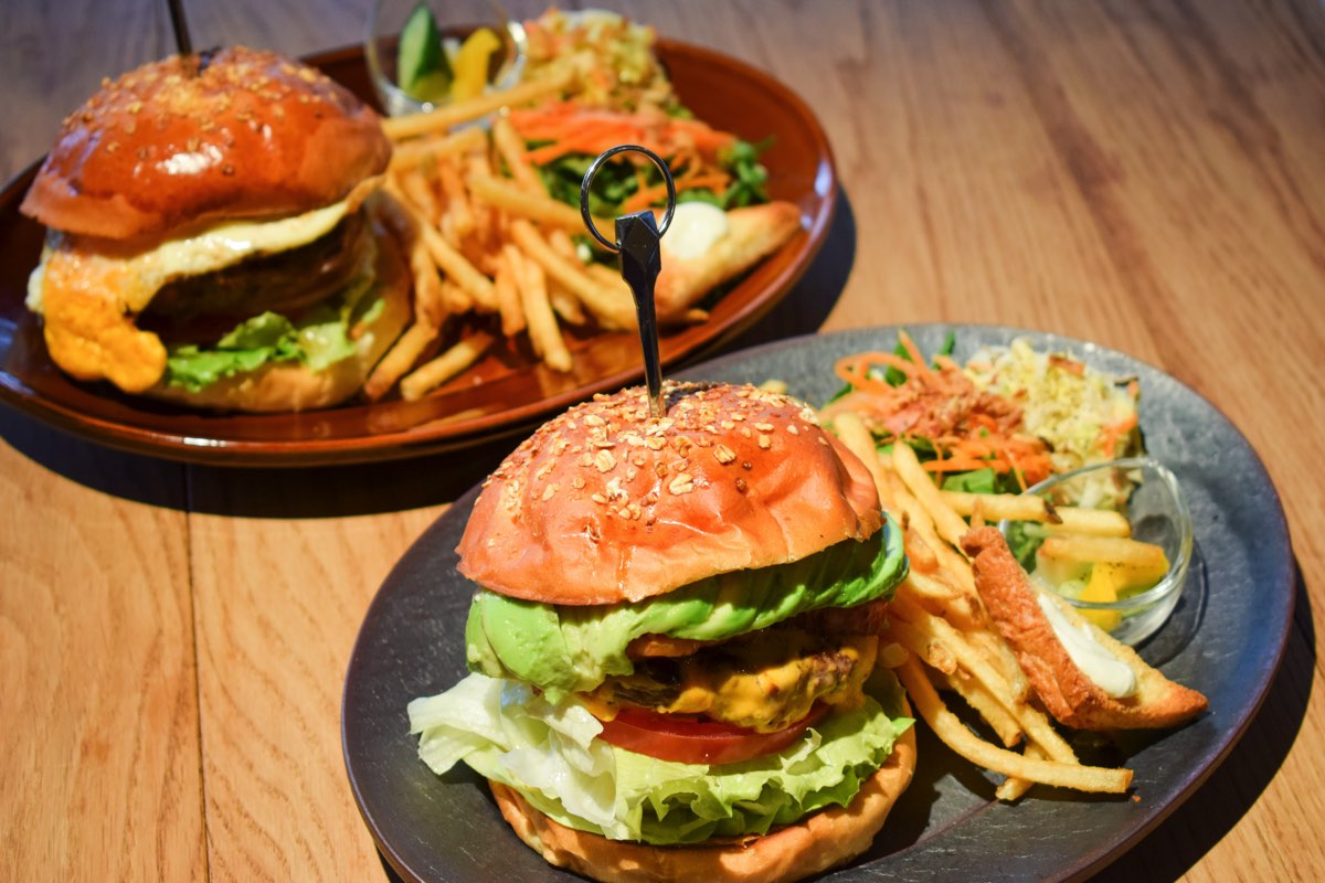 おすすめはもちろん、焼き立てのふわふわバンズにジューシーなパティを挟んだハンバーガーのワンプレート!ボリューム満点なのに、野菜もたっぷりだから罪悪感なく食べ進めてしまう魅惑の味わい…!