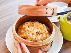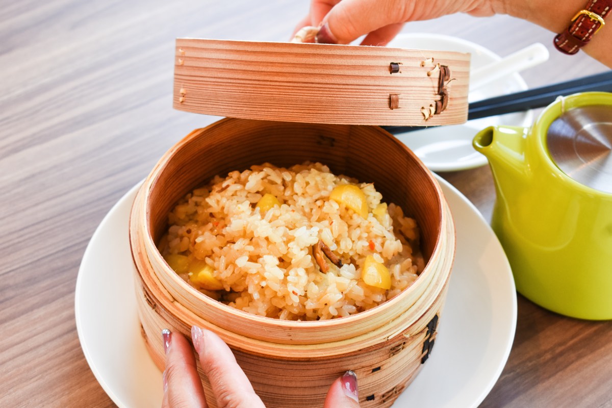 ・飲茶ランチセット 1,155円(11:00~14:00) ・ワインパミス入り小籠包 660円 ・ワインパミス入りエビ蒸し餃子 660円 ・セロリ入りエビ蒸し餃子 660円 ・手作りおこわ 550円(+220円で味噌汁付き) |