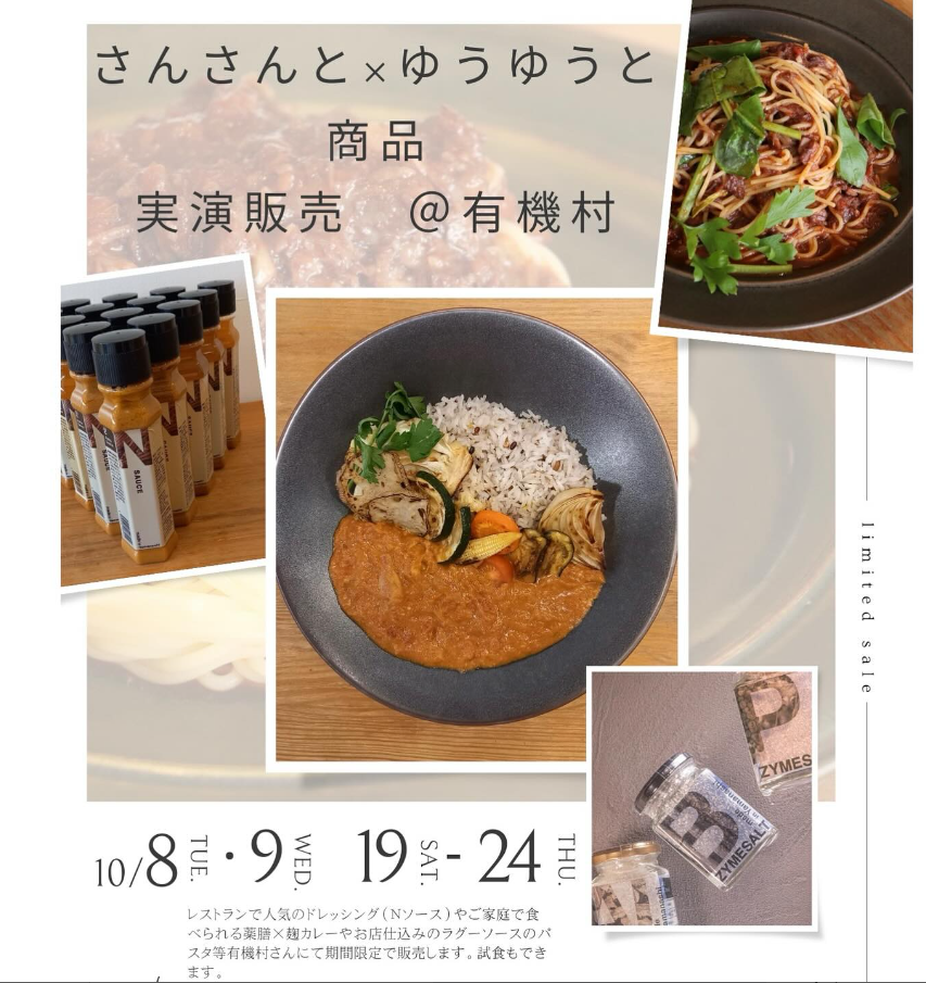この度 10/8.9 19-24 有機村さん @u_kimura_organic358 にて さんさんと、ゆうゆうとの人気商品を実演販売します🤩🤩 今回 醸造のプロ監修のもと、...